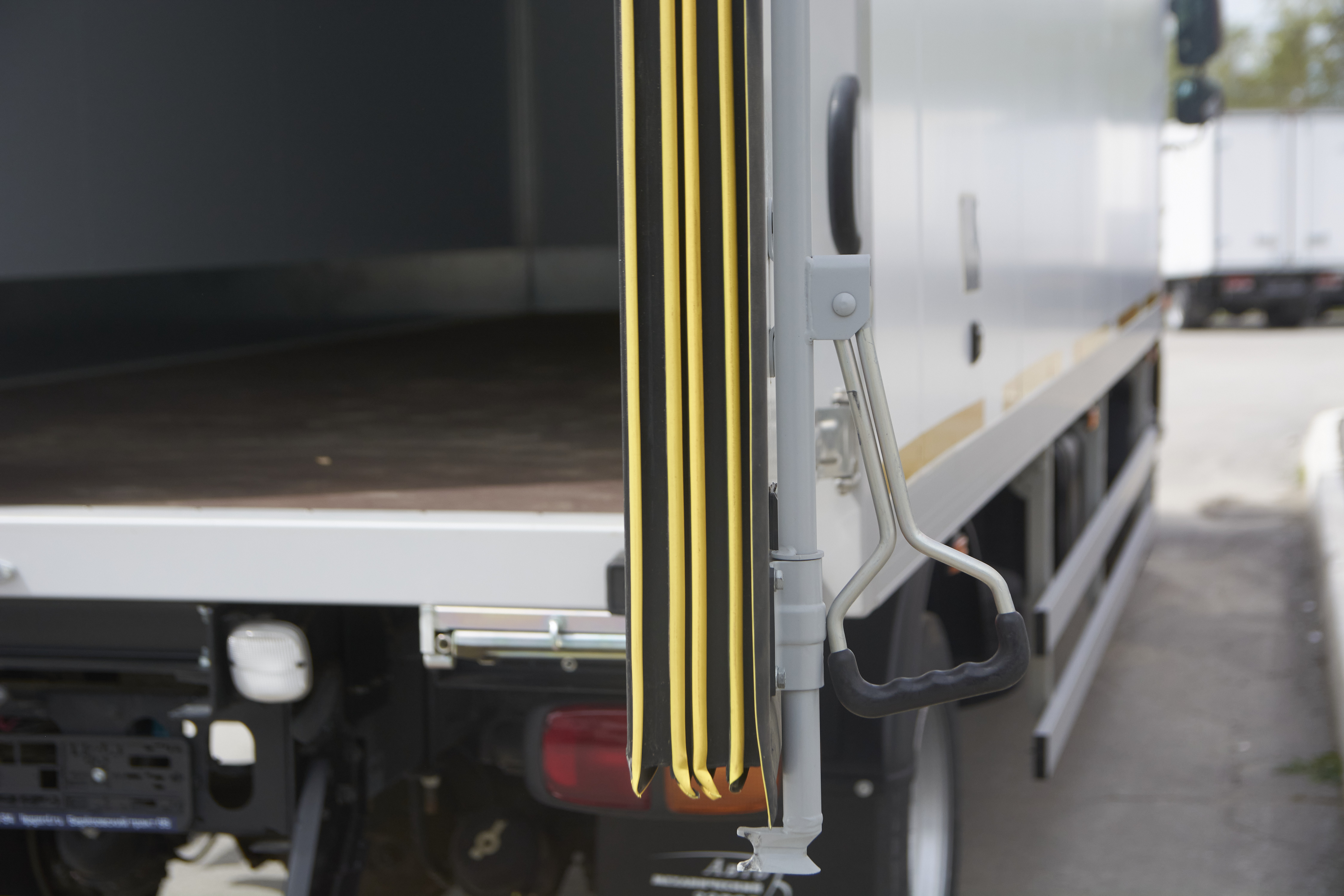 - Оборудование: Пластиковые брызговики. Боковая защита. Противоподкатный брус. Т-образные фиксаторы дверей в открытом положении.